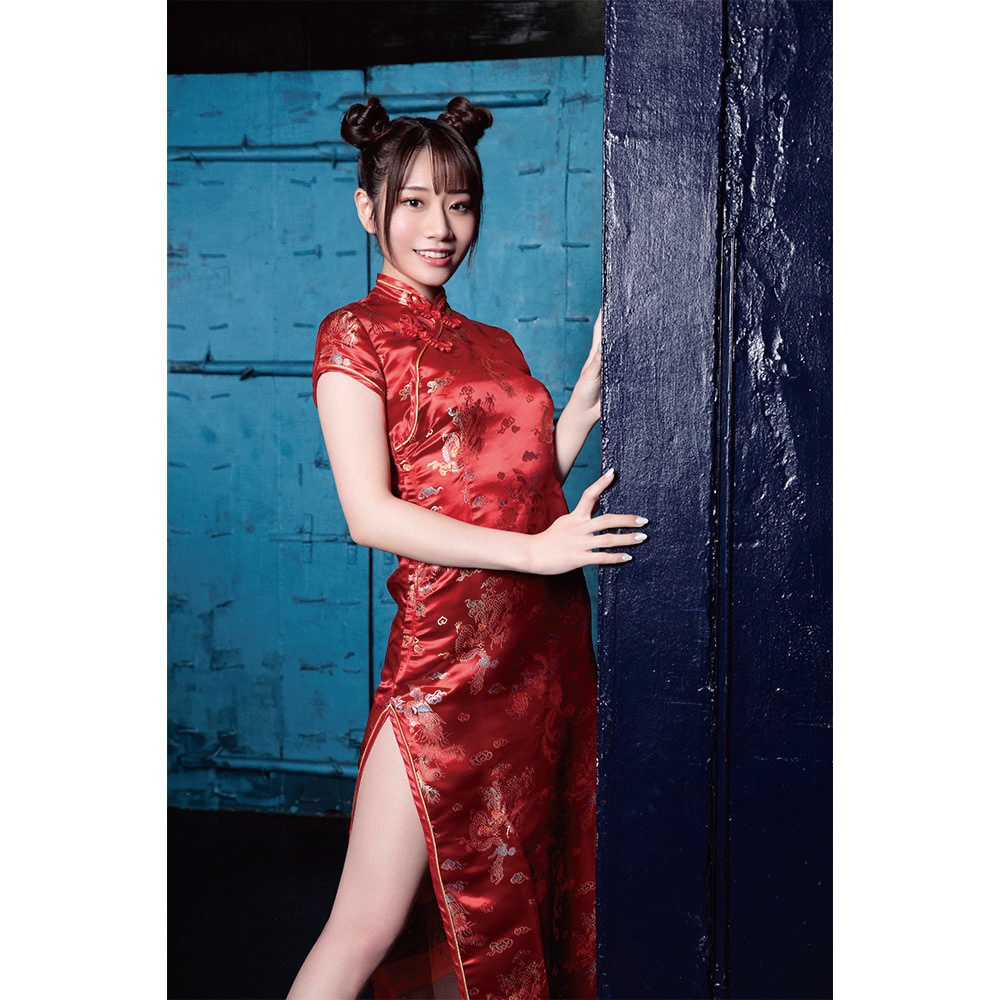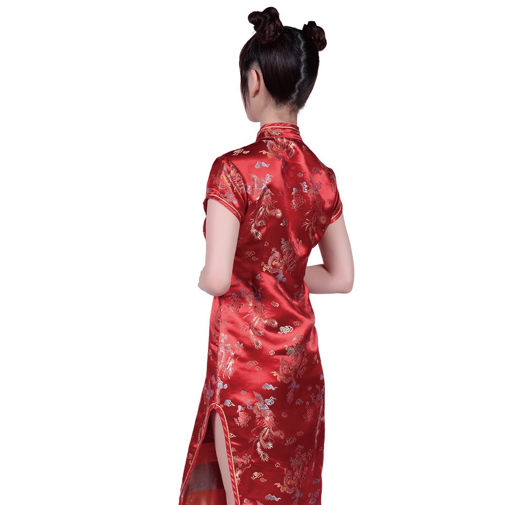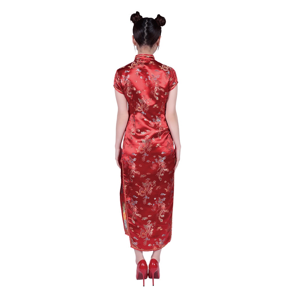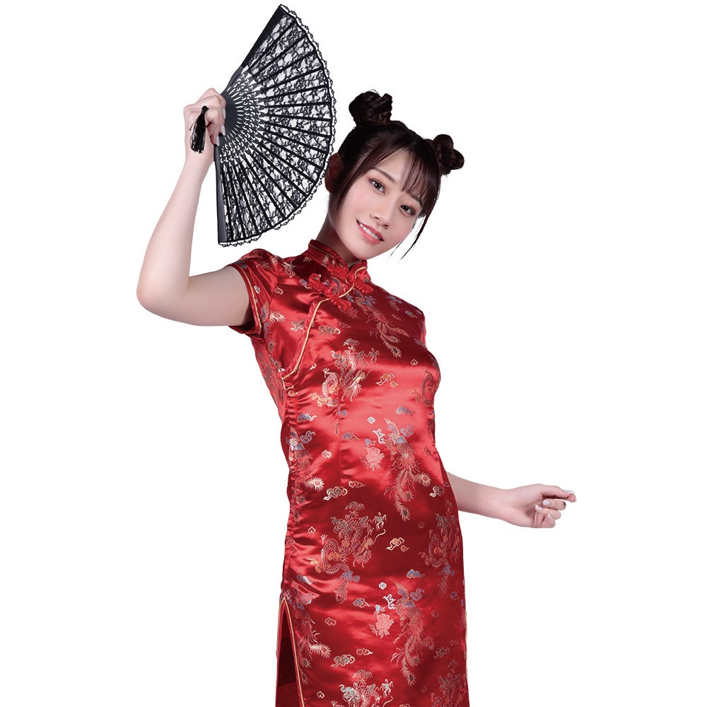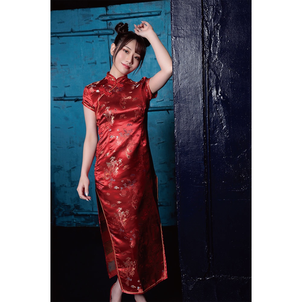 美しいラインのスリット入りチャイナドレス。