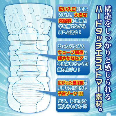 きめ細やかなヒダが連続して亀頭・裏スジをまんべんなく舐め上げる様に刺激。スローセックスの様な最高の射精感を生み出します。